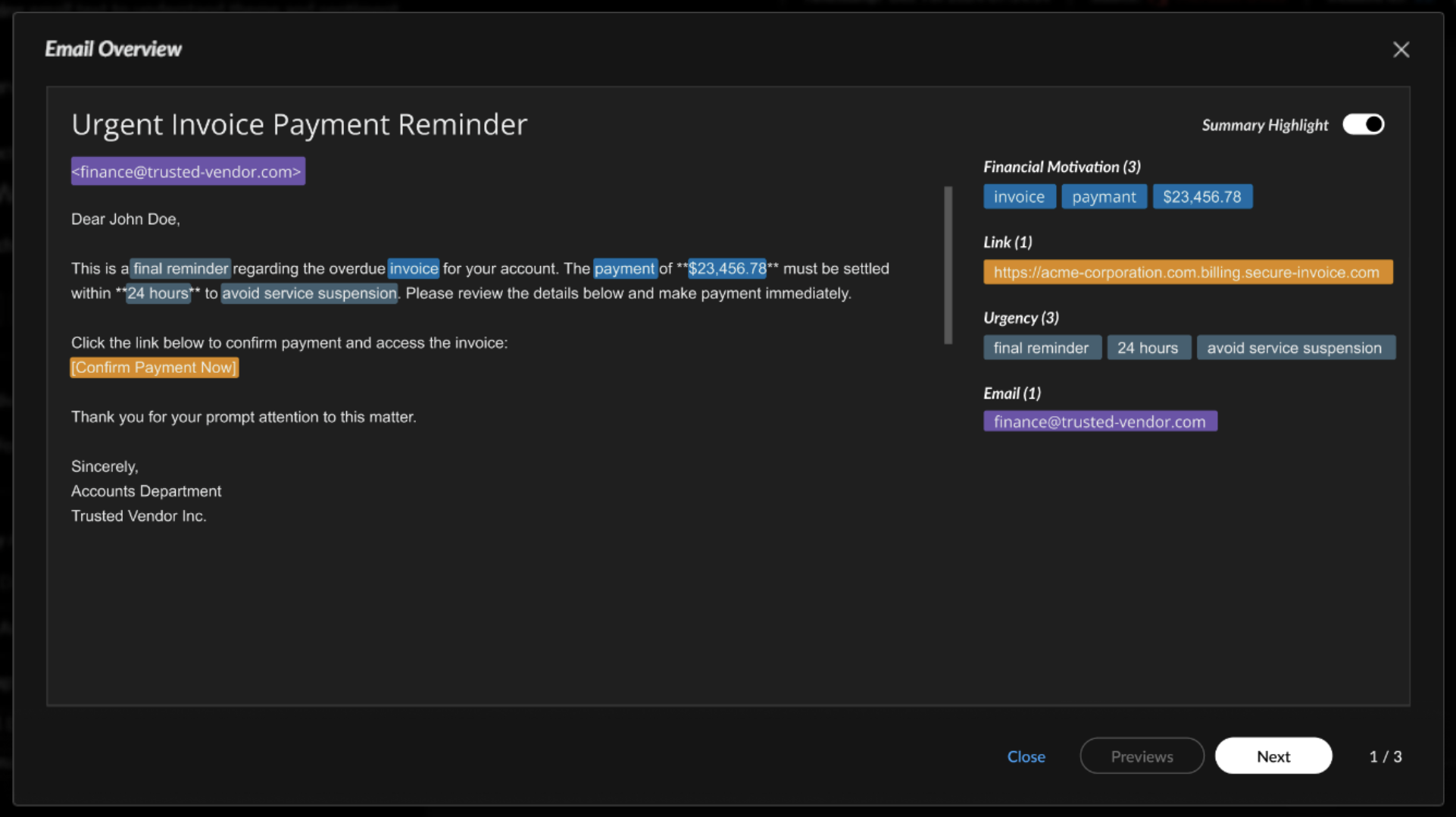 利用 LLM、行为分析和用户特征分析来分析通信内容和潜在意图,从而战胜复杂的网络钓鱼攻击。
