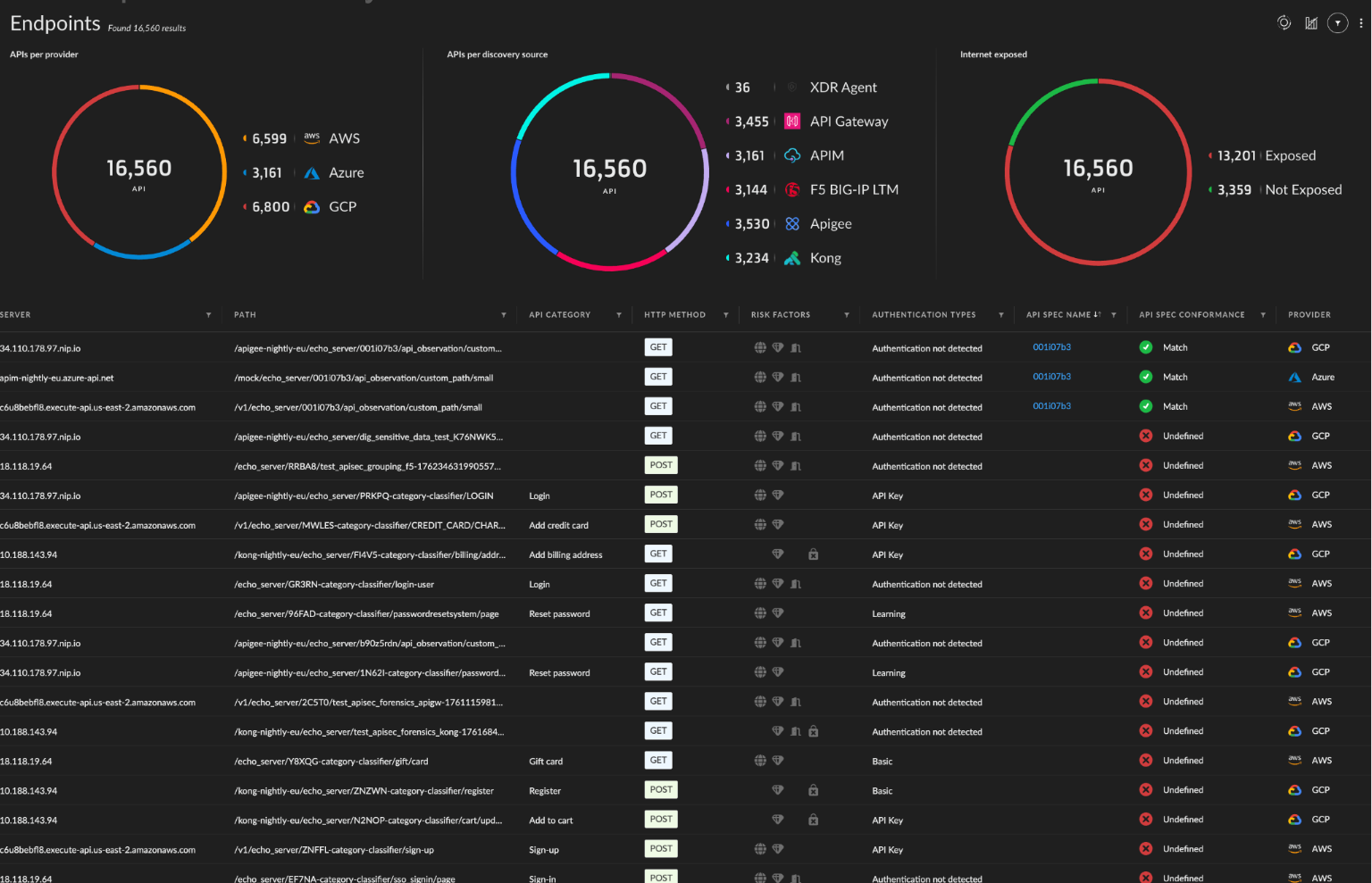 全面了解整个 API 的情况,消除盲点。跨网关、工作负载和云环境自动发现和验证 API。揭示影子、僵尸和未托管的 API,实现完全的可视性和控制。