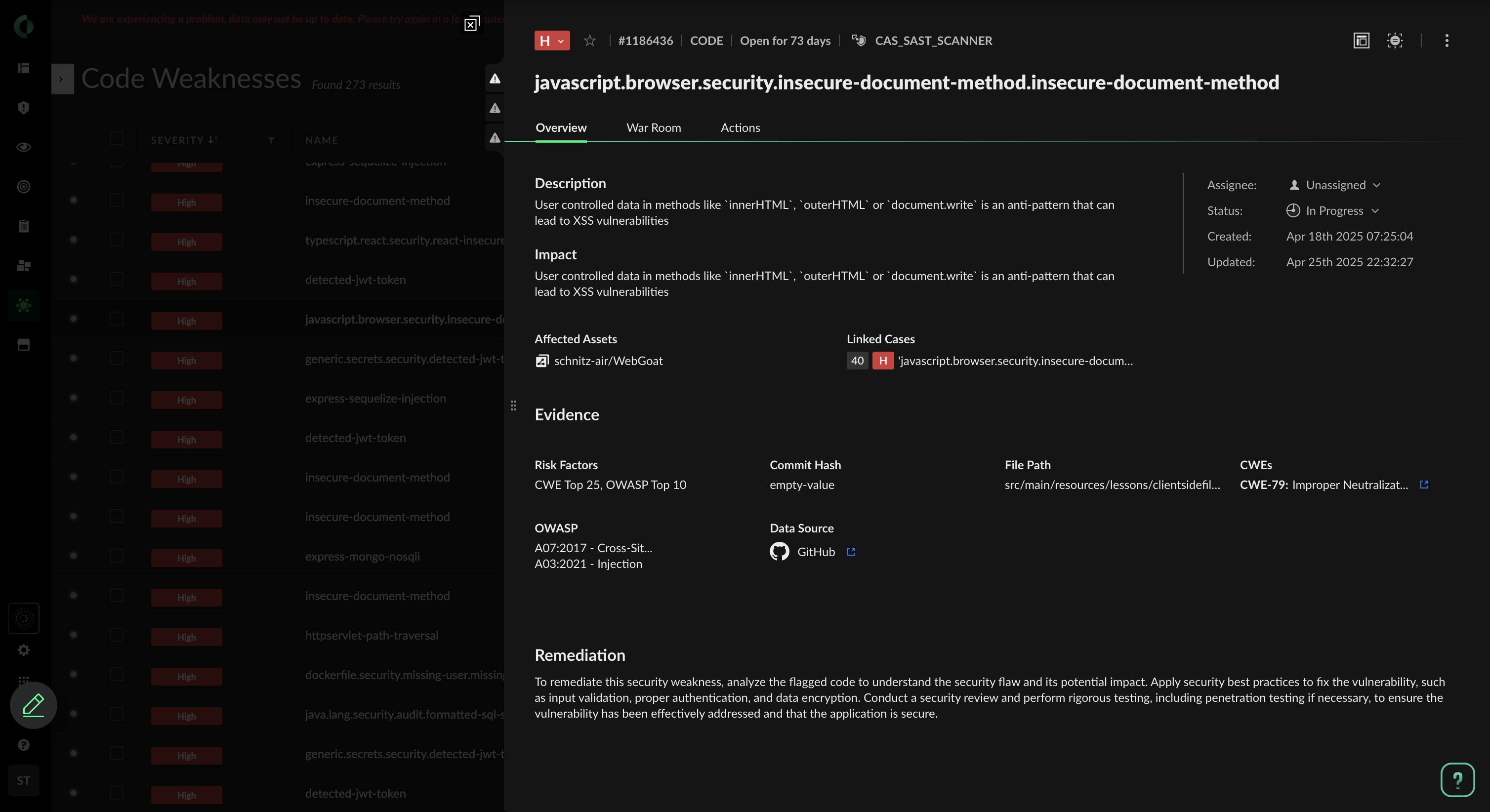 通过连接现有工具和基础设施,将 AppSec 和云安全发现整合到一个平台上,且无需改变开发人员的工作流程。