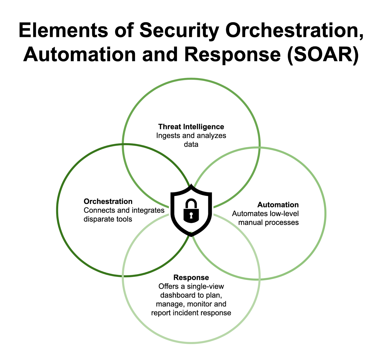 根据 Gartner 的定义,全面的 SOAR 产品旨在在三个主要软件功能下运行:威胁和漏洞管理、安全事故响应和安全运营自动化。