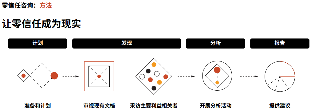 评估企业当前的安全态势,根据零信任原则调整战略,为成功实施制定量身定制的路线图。